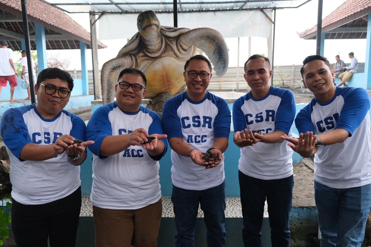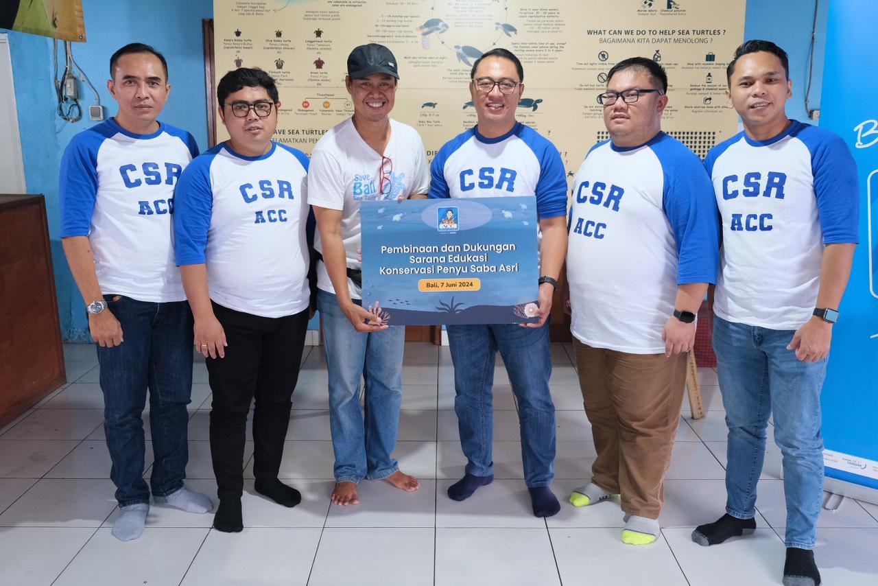 Branch Manager ACC Denpasar Ary Wiadnyana (ketiga dari kanan) didampingi ARManagement Head ACC Renon Dedi Hasiholan dan pejabat ACC Denpasar memberikan dukungan pembinaan dan sarana edukasi di Konservasi Penyu Saba Asri, Gianyar, Bali. Foto: SRID/Istimewa