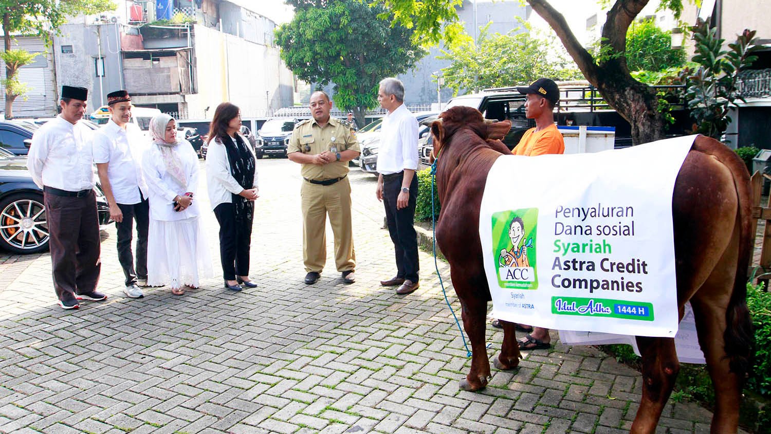 SinarHarapan.id – Unit Usaha Syariah Head ACC Wisnu Wardana, Corporate Compliance & Internal Audit Division Head Ronggur Saragih, Retention Business Division Head Vivi Elfira, Chief Human Capital Officer Matilda Esther, Lurah Tanjung Barat Ali Haryanto, Chief In Charge ACC Syariah Mohammad Farauk melakukan penyerahan hewan kurban secara simbolis di Kantor Pusat ACC Jakarta Selatan (26/6/2023). Menyambut Hari Raya Iduladha 1444 H Astra Credit Companies (ACC) menyalurkan sebanyak 1 ekor sapi limosin dan 153 ekor domba yang akan didistribusikan untuk masyarakat di sekitar kantor cabang ACC. Penyaluran hewan kurban ini mengatasnamakan 160 karyawan ACC (Mudhohi). Foto: SRID/Ruht Semiono