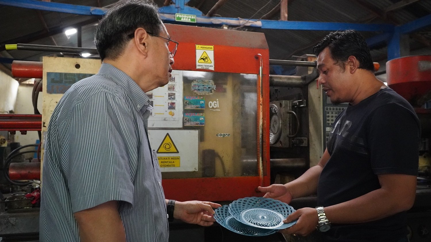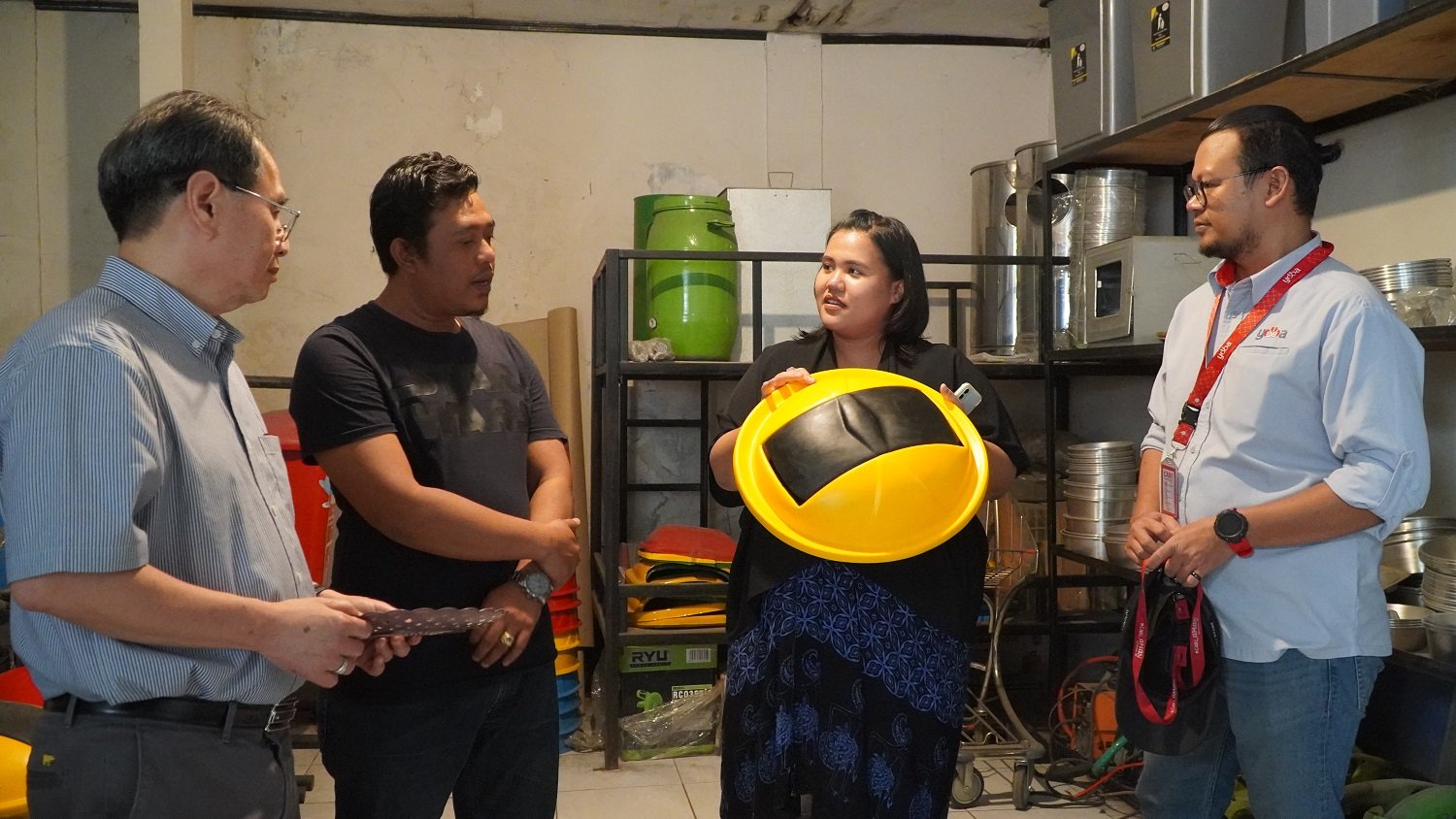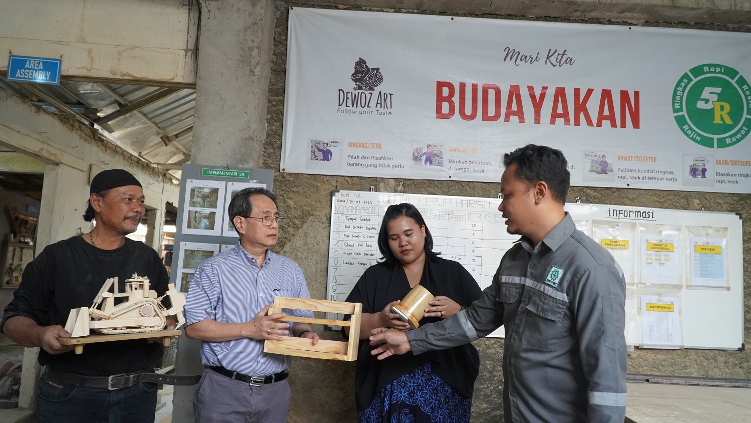 StockReview.id – Pemilik UMKM binaan Astra melalui Yayasan Dharma Bhakti Astra (YDBA), Dewoz Art, Bayu Agusworo (kanan) dan Suwarto (kiri) saat menunjukkan produk hasil buatannya kepada Ketua Pengurus YDBA, Sigit P. Kumala (kedua kiri) dan SMEs Coordinator IKEA Indonesia, Rimaditya Prameswari (kedua kanan) dalam kegaiatan #AsikBersamaUMKM di Tarikolot Bogor pekan lalu. #AsikBersamaUMKM merupakan salah satu kegiatan YDBA yang bertujuan untuk memperkenalkan UMKM kepada stakeholder sekaligus mengajak stakeholder tersebut untuk berkolaborasi baik sebagai Ayah Angkat maupun Offtaker bagi UMKM binaan YDBA. Selain itu Ketua Pengurus Yayasan Dharma Bhakti Astra (YDBA), Sigit P. Kumala juga mengunjungi UMKM binaan Astra melalui YDBA lainya yakni CV Harapan Mandiri dengan material limbah plastik yang di-recycle menjadi produk atau komponen alat rumah tangga. Foto: SRID/Ruht Semiono