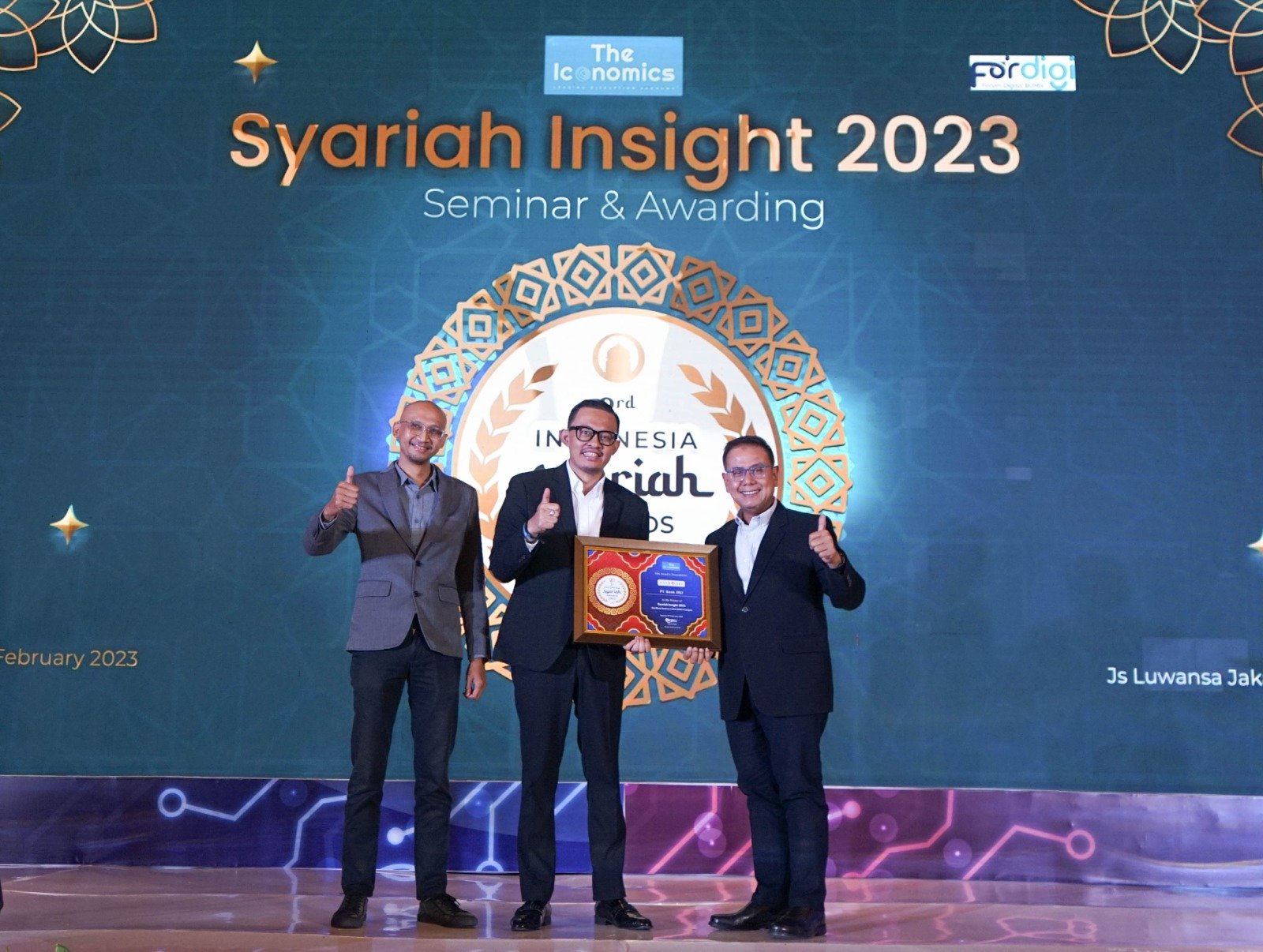 StockReview.id – Direktur Keuangan & Strategi Bank DKI Romy Wijayanto (kanan) menerima penghargaan yang diberikan oleh CEO The Iconomics, Bram S. Putro (tengah) dan Pemimpin Redaksi The Iconomics, Arif Hatta (kiri) atas kinerja Bank DKI Syariah sebagai Top Sharia Business Unit in KBMI 2 Category yang diselenggarakan oleh The Iconomics, pada gelaran 3rd Indonesia Syariah Awards 2023 di Jakarta pada Jumat (17/02/2023). Penghargaan diberikan kepada perusahaan jasa keuangan syariah, baik Badan Usaha Syariah (BUS) maupun Unit Usaha Syariah (UUS) dengan kinerja keuangan yang baik dan berkontribusi besar terhadap peningkatan inklusi keuangan syariah nasional di tahun 2022. Aspek utama yang dinilai adalah pencapaian kinerja bisnis, yang meliputi total aset, liabilitas, ekuitas, laba komprehensif, ROA, ROE, serta mempertimbangkan tingkat pertumbuhan pendapatan bersih yang dicapai.