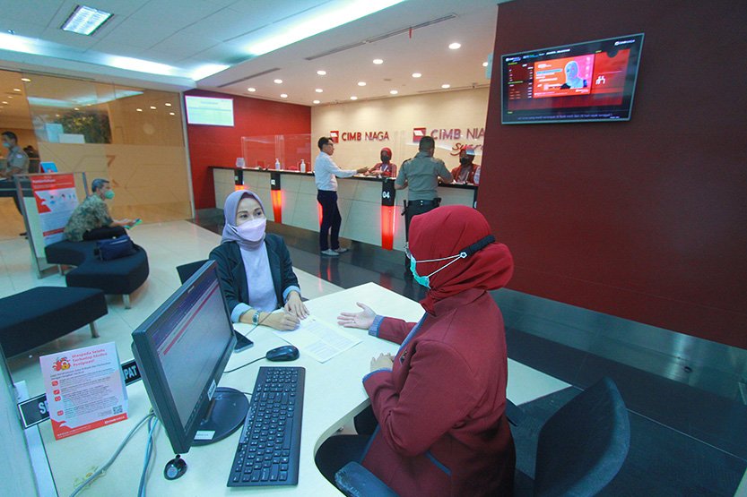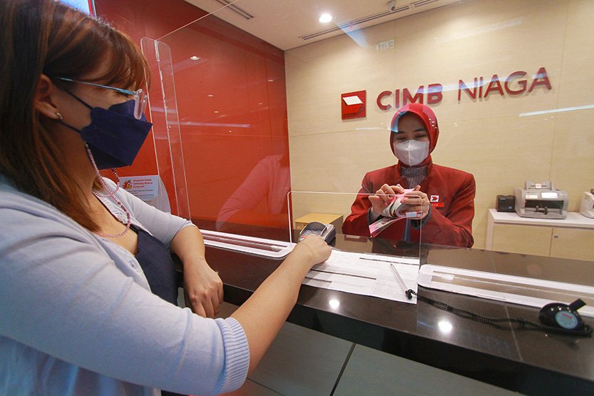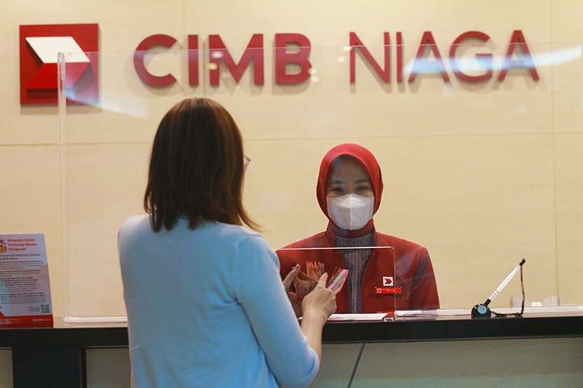 StockReview.id – Nasabah melakukan transaksi di Kantor Cabang CIMB Niaga di Jakarta, Kamis (23/2/2023). CIMB Niaga mencatatkan perolehan laba sebelum pajak konsolidasi (audited) sebesar Rp6,6 triliun pada tahun 2022. Angka ini naik sebesar 26,7% yoy. Jumlah kredit/pembiayaan juga meningkat 9,4% yoy menjadi Rp199 triliun (termasuk pembiayaan Salam). Peningkatan kinerja didukung inovasi produk dan layanan perbankan yang komprehensif untuk memberikan pengalaman serta kenyamanan transaksi terbaik bagi nasabah. Foto: SRID/Ruht Semiono
