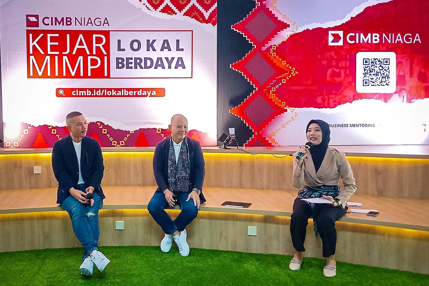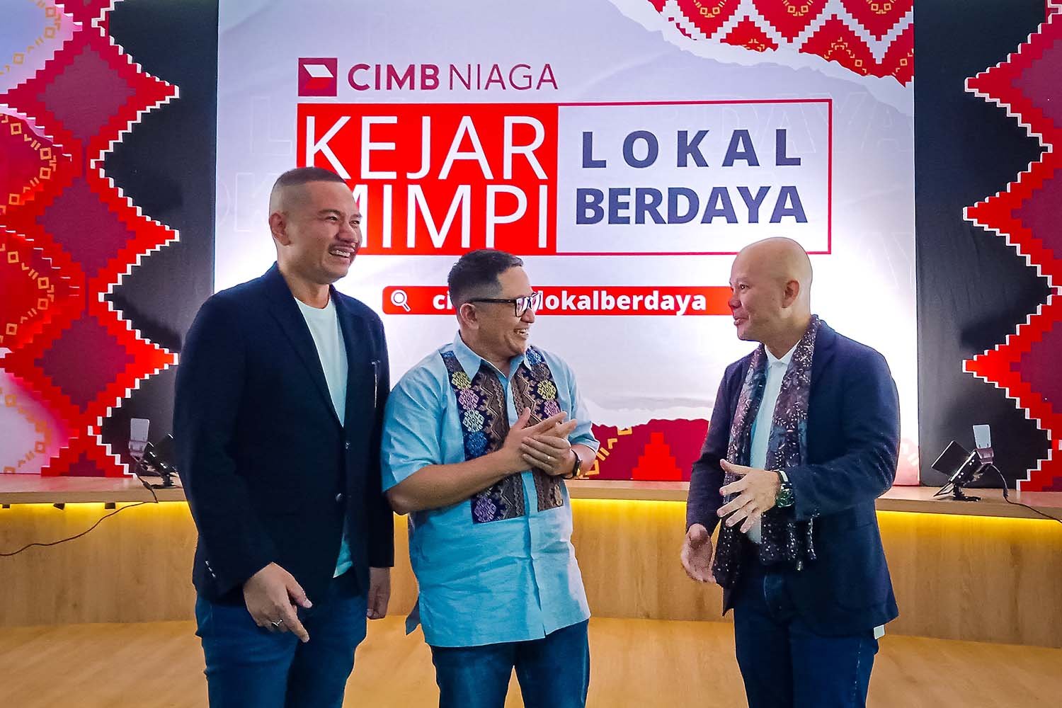 StockReview.id – Head of Emerging Business Banking CIMB Niaga Tony Tardjo (kanan) bersama Brand Strategy & Experience Head CIMB Niaga Muhamad Firdaus Andjar (kiri), dan Corporate Communication Head CIMB Niaga Hery Kurniawan berbincang bersama selepas Media Gathering terkait peluncuran program Kejar Mimpi Lokal Berdaya di Jakarta, Senin (10/7/2023). Program CIMB Niaga Kejar Mimpi Lokal Berdaya bertujuan untuk merealisasikan mimpi para pebisnis UKM di berbagai daerah agar bisa terus berkarya, berdaya, dan berkontribusi terhadap pertumbuhan ekonomi nasional. Melalui program ini, CIMB Niaga memberikan kesempatan kepada UKM untuk mendapatkan mentoring bisnis, memperluas jejaring dengan sesama entrepreneur, serta menampilkan produk-produknya agar dikenal pasar yang lebih luas. Tahun ini program akan digelar di tiga kota, diawali Makassar sebagai kota pertama pada 15-16 Juli 2023. SRID/Ruht Semiono
