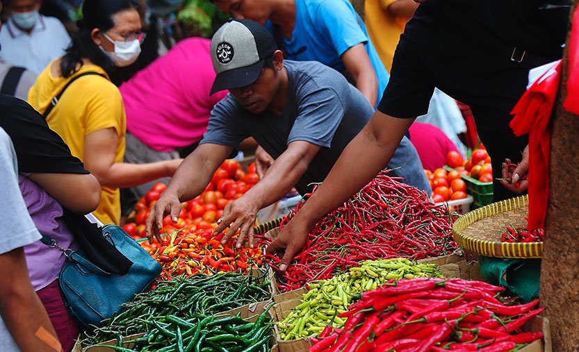 Harga sejumlah bahan komoditas pangan di Pasar Kebayoran Lama, Jakarta naik menjelang tahun baru Imlek tahun 2023. Diduga kenaikan harga terjadi akibat cuaca buruk dalam beberapa waktu terakhir, sehingga mengakibatkan hasil panen petani di daerah minim. Foto: SRID/Ruht Semiono