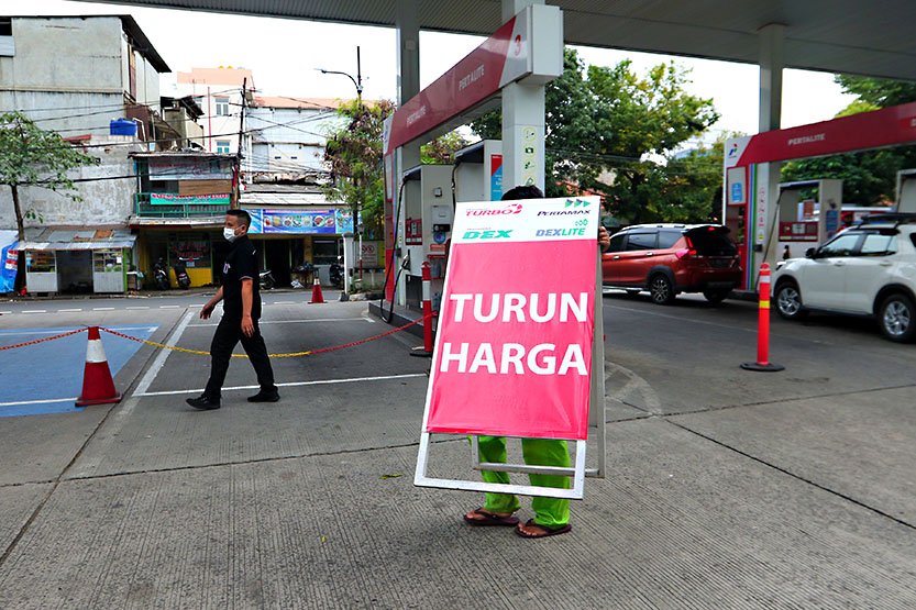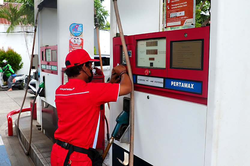 StockReview.id – Petugas melayani pengisian bahan bakar minyak (BBM) jenis Pertamax di Jakarta, Rabu (4/1/2023). Pemerintah resmi menetapkan penurunan harga BBM nonsubsidi yaitu jenis Pertamax dari Rp13.900 per liter menjadi Rp12.800 per liter, Pertamax Turbo dari Rp15.200 menjadi Rp14.050 per liter dan Dexlite dari Rp18.800 menjadi Rp16.750 per liter yang mulai berlaku pada Selasa 3 Januari 2023 pukul 14.00 WIB. Foto: SRID/Ruht Semiono