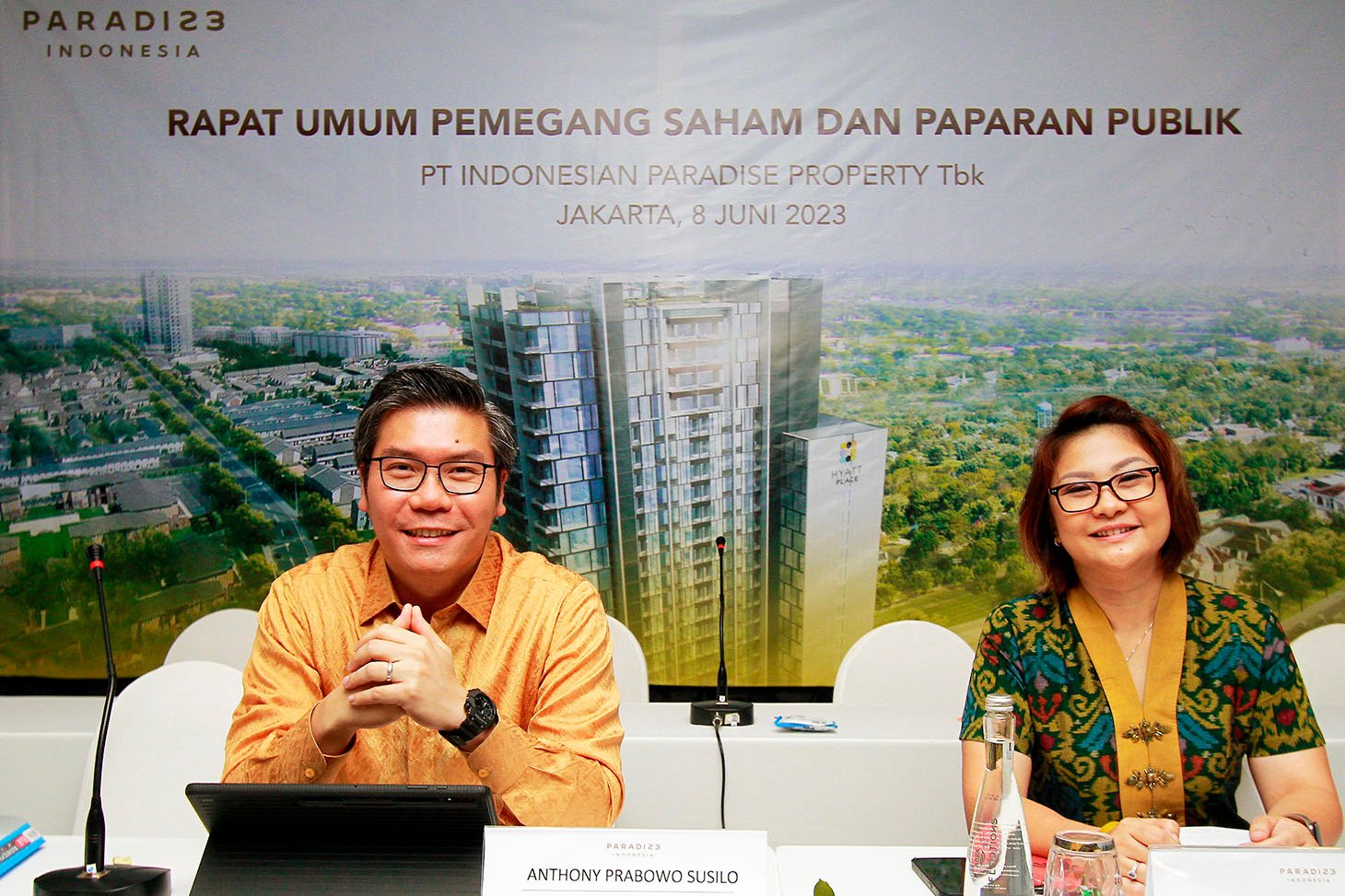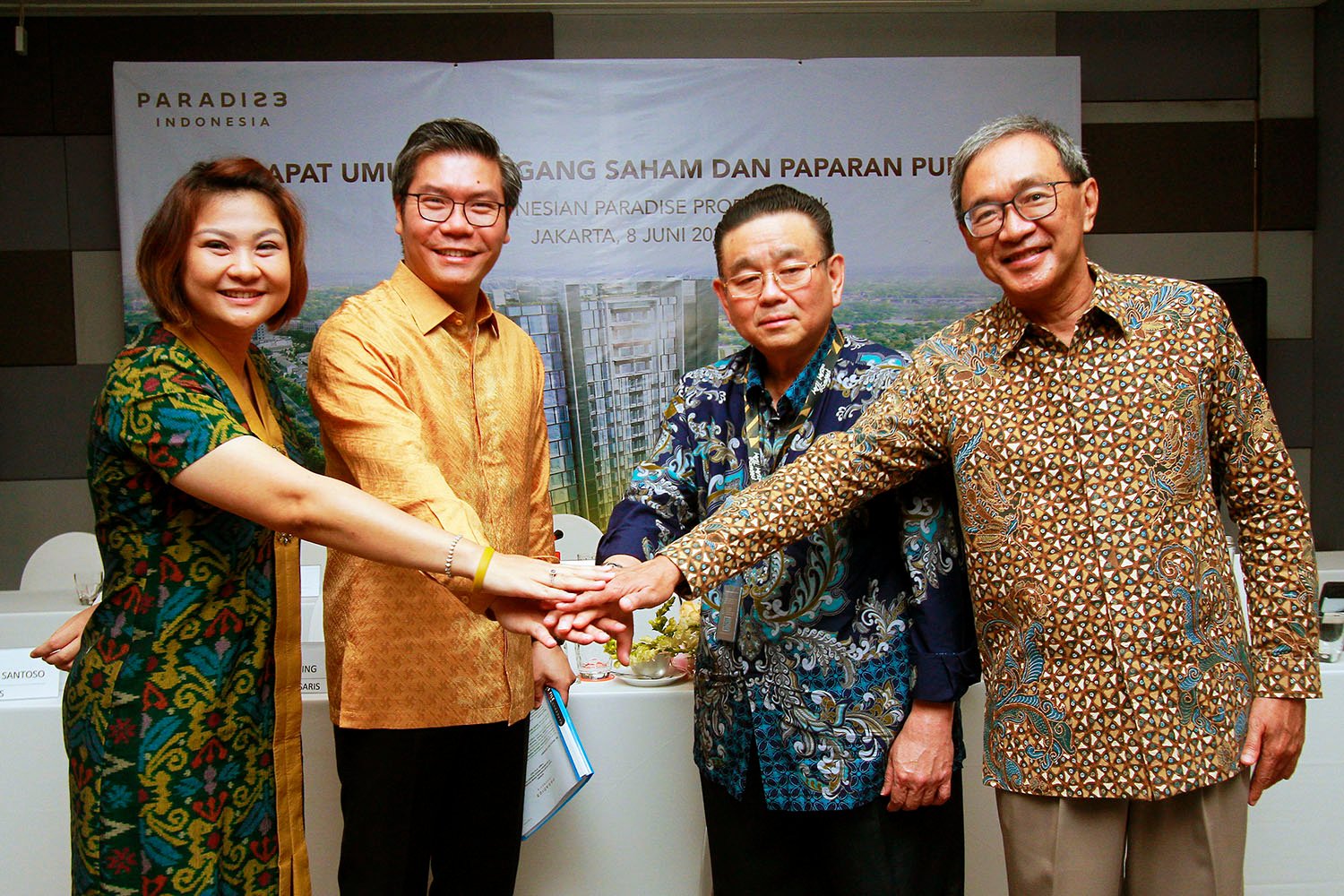 StockReview.id – Jajaran Direksi PT Indonesia Paradise Property Tbk (dari kiri ke kanan) Direktur Surina, Direktur Utama Anthony Prabowo Susilo, Direktur Djatikesumo Subagio, Direktur Patrick Santosa Rendradjaja berfoto bersama pada acara paparan publik PT Indonesia Paradise Property di Jakarta, Kamis (8/7/2023). PT Indonesian Paradise Property Tbk (INPP) menyelenggarakan paparan publik hari ini di fX Sudirman untuk menginformasikan kepada pemegang saham dan masyarakat umum mengenai kinerja keuangan mereka untuk tahun 2022 dan kuartal pertama tahun 2023.