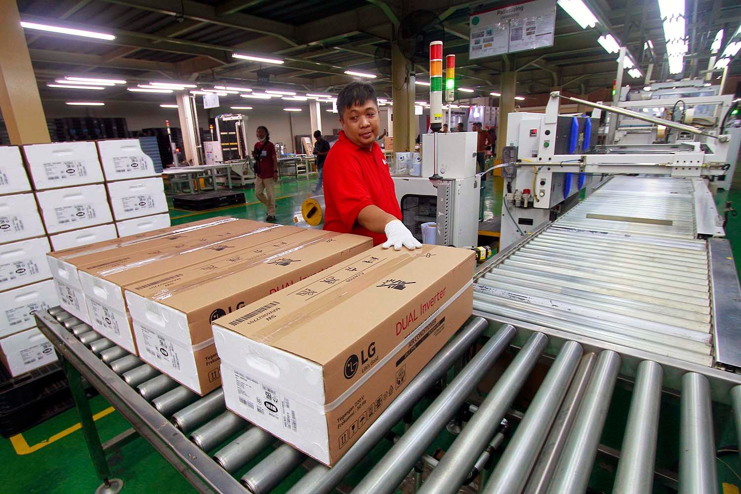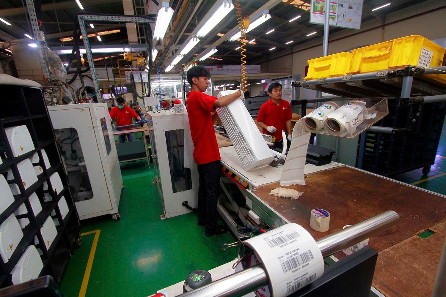 StockReview.id – (dari kiri ke kanan) Direktur Industri Elektronika dan Telematika Kementerian Perindustrian Priyadi Arie, President of LG Electronics Indonesia Jung Jae Hoon, Production Leader of LGEIN Tangerang Factory Jaeho Leem, Manufacturing Department Leader of LGEIN – Tangerang Factory Amirul Setiya Adi berbincang saat meninjau produksi AC di LG Factory, Legok, Kabupaten Tangerang, Banten, Selasa (23/5/2023). LG akan memproduksi AC Multi V untuk bangunan komersial dan gedung perkantoran pada kuartal IV tahun 2023 dengan target produksi perdana sebanyak 100 unit per bulan. Foto: SHID/Ruht Semiono