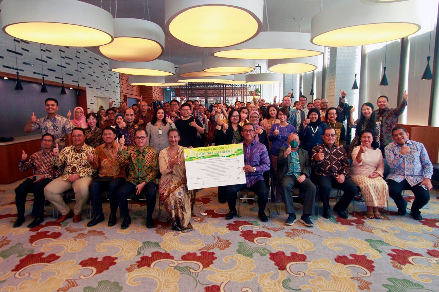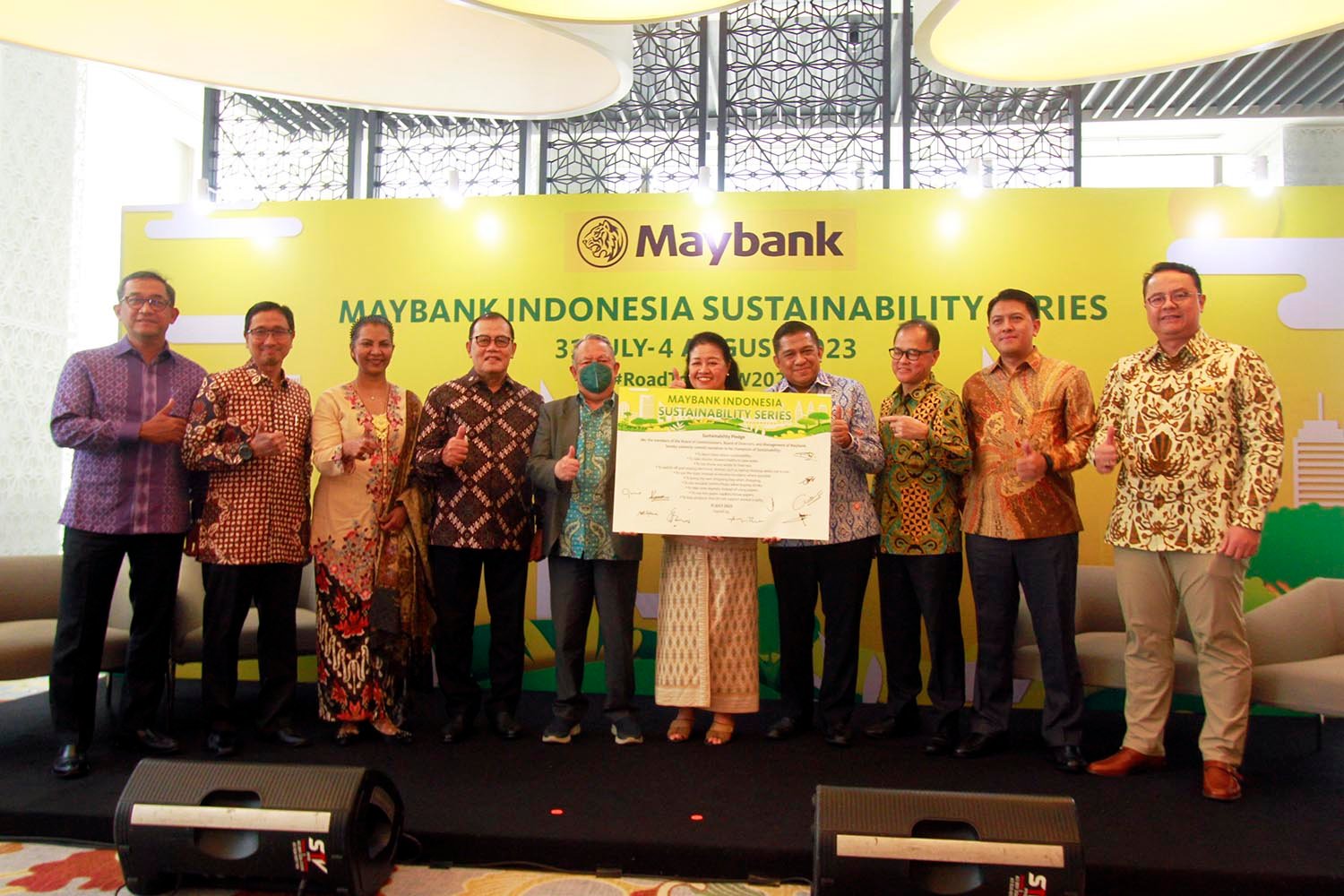 Hadir pada kegiatan penandatanganan “Sustainability Pledge” tersebut, Komisaris Independen Maybank Indonesia Budhi Dyah Sitawati, Komisaris Independen Maybank Indonesia Achjar Iljas, Komisaris Independen Maybank Indonesia Hendar, Direktur Keuangan Maybank Indonesia Thilagavathy Nadason, Direktur Human Capital Maybank Indonesia Irvandi Ferizal, Direktur Manajemen Risiko Maybank Indonesia Effendi, Direktur Kepatuhan Maybank Indonesia Muhamadian, dan Direktur Teknologi dan Informasi Maybank Indonesia Bambang Andri Irawan.