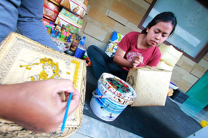 StockReview.id – Pengrajin bambu di Laskar studio sedang melukis besek yang terbuat dari bahan bambu di workshpnya di Desa Penglipuran, Bali, baru-baru ini. Pulau Bali mempunyai banyak sekali hutan bambu yang terdapat di beberapa desa, salah satunya di Desa Penglipuran di Bangli. Desa ini menata dan mengelolanya dengan serius, sehingga pelancong tak ragu berkunjung. Terlebih masih kuatnya mitos tenget (angker) di Bali jika jalan-jalan di hutan bambu. BPJS Ketenagakerjaan membangun pemahaman para pekerja terkait pentingnya memiliki perlindungan jaminan sosial ketenagakerjaan Perlindungan pun tidak terbatas untuk pekerja kantoran saja, namun pekerja informal seperti nelayan, petani, pedagang, pekerja seni dan pariwisata maupun profesi lainnya juga berhak mendapatkan perlindungan yang sama. Foto: SRID/Ruht Semiono