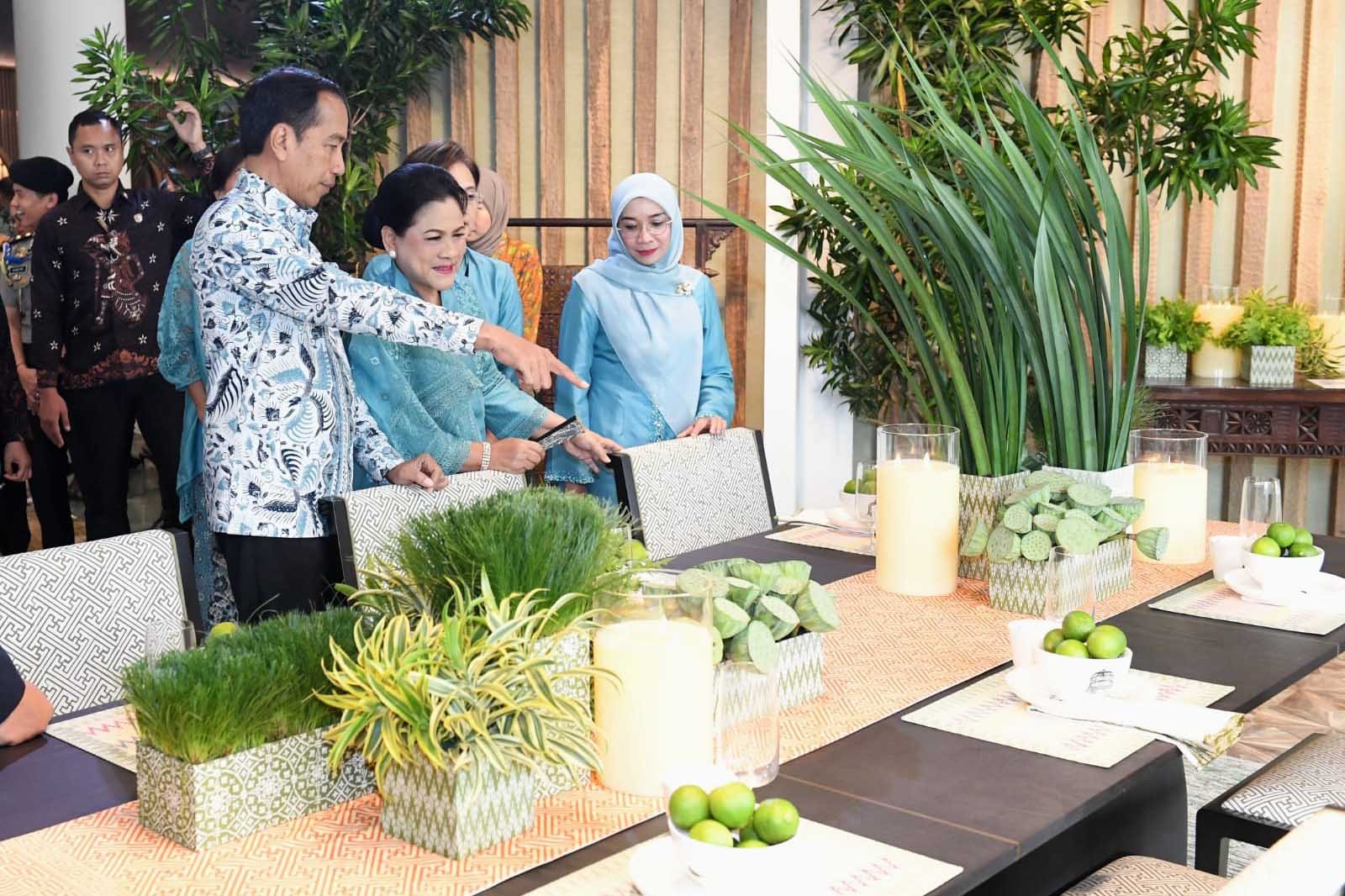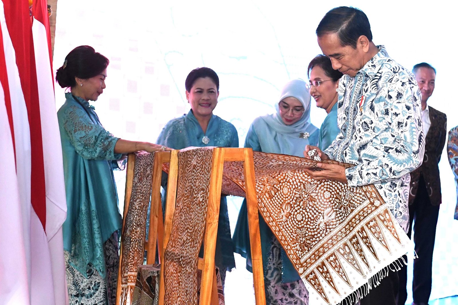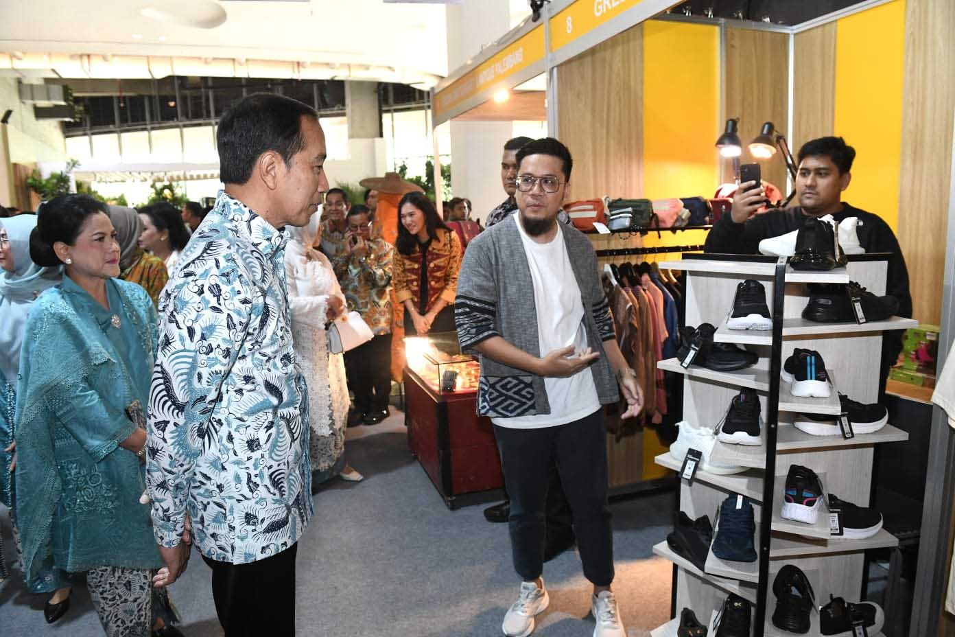 Usai membuka Gelar Batik Nusantara di Senayan Park Mall, Jakarta, pada Rabu, 2 Agustus 2023, Presiden Joko Widodo dan Ibu Iriana Joko Widodo berkeliling untuk meninjau sejumlah pameran batik yang ada di sana. Selain itu, Presiden dan Ibu Iriana juga turut mengunjungi sejumlah stan yang menghadirkan produk-produk UMKM. Foto: BPMI Setpres