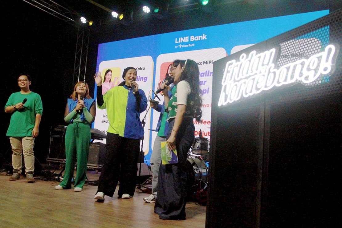 StockReview.id – E-Channel Management Hana Bank Leander Arditya (kiri), E-Channel Management Hana Bank Medika Dwi Oktafiany (kedua kiri), E-Channel Management Hana Bank, Funding Product Head Hana Bank Meivita Amelia (ketiga kiri) berbincang disela HUT ke-3 Line Bank by Bank Hana di Jakarta, Jumat (21/6). Mengusung tema “Ngebank Senyaman Mungkin” atau #S3nyamanMungkin sebagai bentuk selebrasi hari jadi, LINE Bank terus berkomitmen untuk menghadirkan solusi pintar dan tepercaya untuk segala aktivitas finansial yang sesuai dengan kebutuhan penggunanya.Foto: SRID/Ruht Semiono