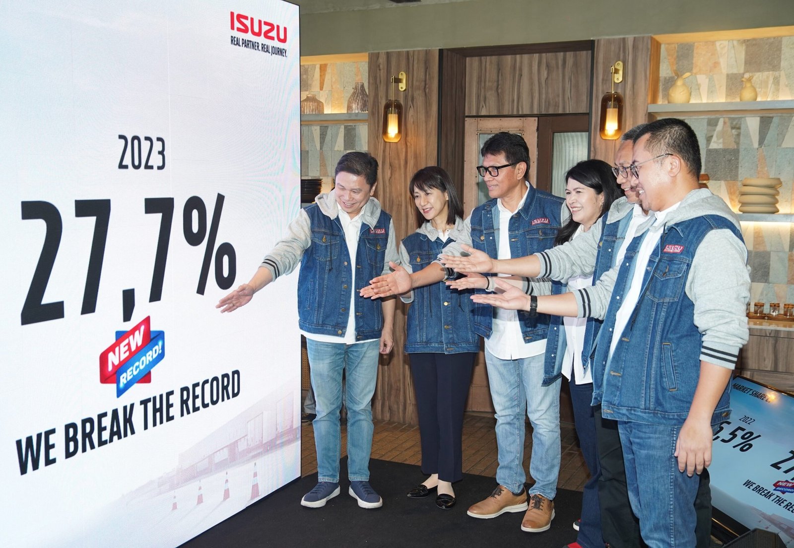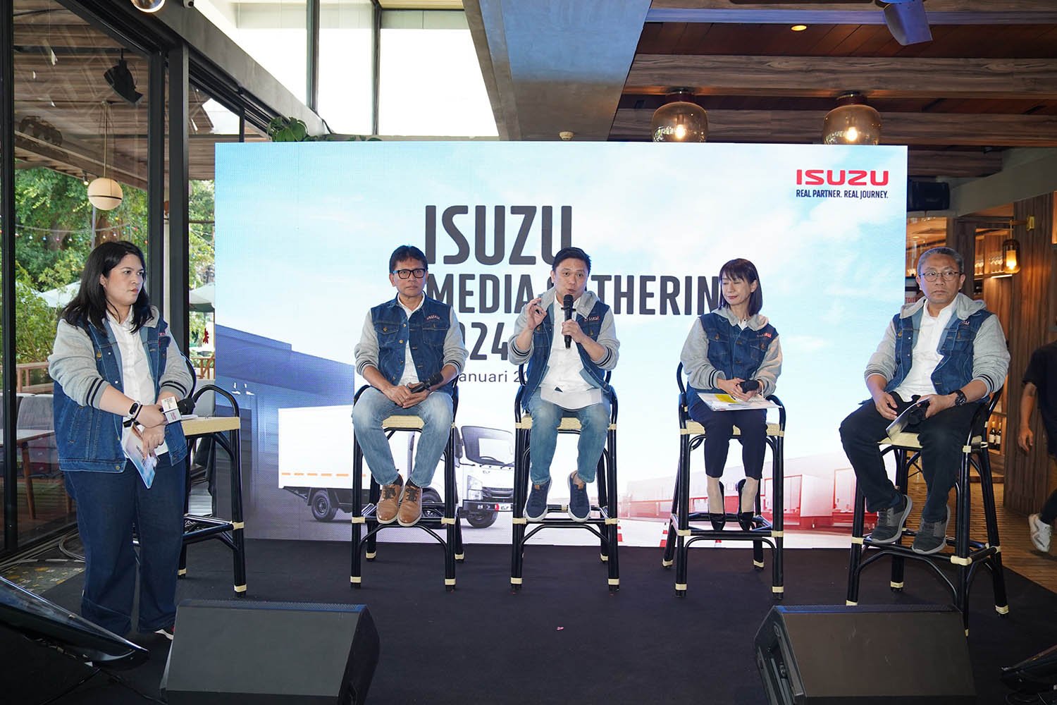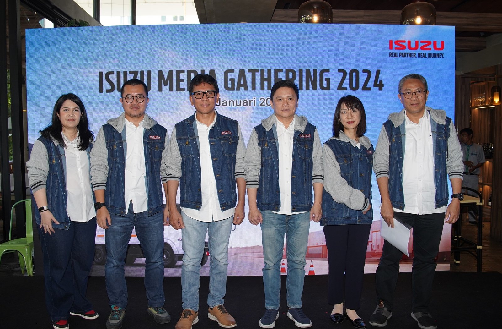 StockReview.id – Puti Annisa Moeloek, Marketing Communications Manager PT. Isuzu Astra Motor Indonesia, Rian Erlangga, Deputy Division Head of Business Strategy Division PT. Isuzu Astra Motor Indonesia, Rahmat Samulo, Director of Business Solution Directorate PT. Isuzu Astra Motor Indonesia, Yusak Kristian Solaeman, President Director PT. Isuzu Astra Motor Indonesia, Kyouko Hikima – Director of Business Directorate PT. Isuzu Astra Motor Indonesia dan Attias Asril, Division Head of Business Strategy Division PT. Isuzu Astra Motor Indonesia di Jakarta, Kamis (25/1/2024).