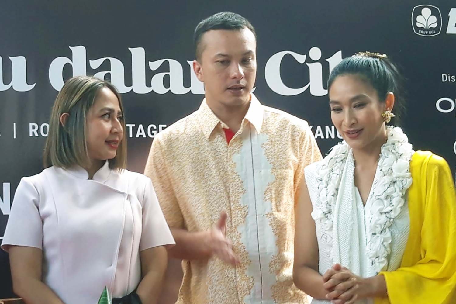 StockReview.id – Produser Sudamala, Nicholas Saputra (tengah) dan Happy Salma (kanan) berbincang dengan EVP Corporate Communication and Social Responsibility PT Bank Central Asia Tbk. (BBCA) Hera F. Haryn di sela-sela jumpa pers gelaran Satu dalam Cita di Jakarta, Selasa (23/5/2023). Setelah sukses menyelenggarakan pementasan teater tradisi Sudamala: Dari Epilog Calonarang pada tahun lalu di Gedung Arsip Nasional, Titimangsa kembali hadir dalam kolaborasi Satu dalam Cita yang didukung oleh PT Bank Central Asia Tbk. (BBCA).