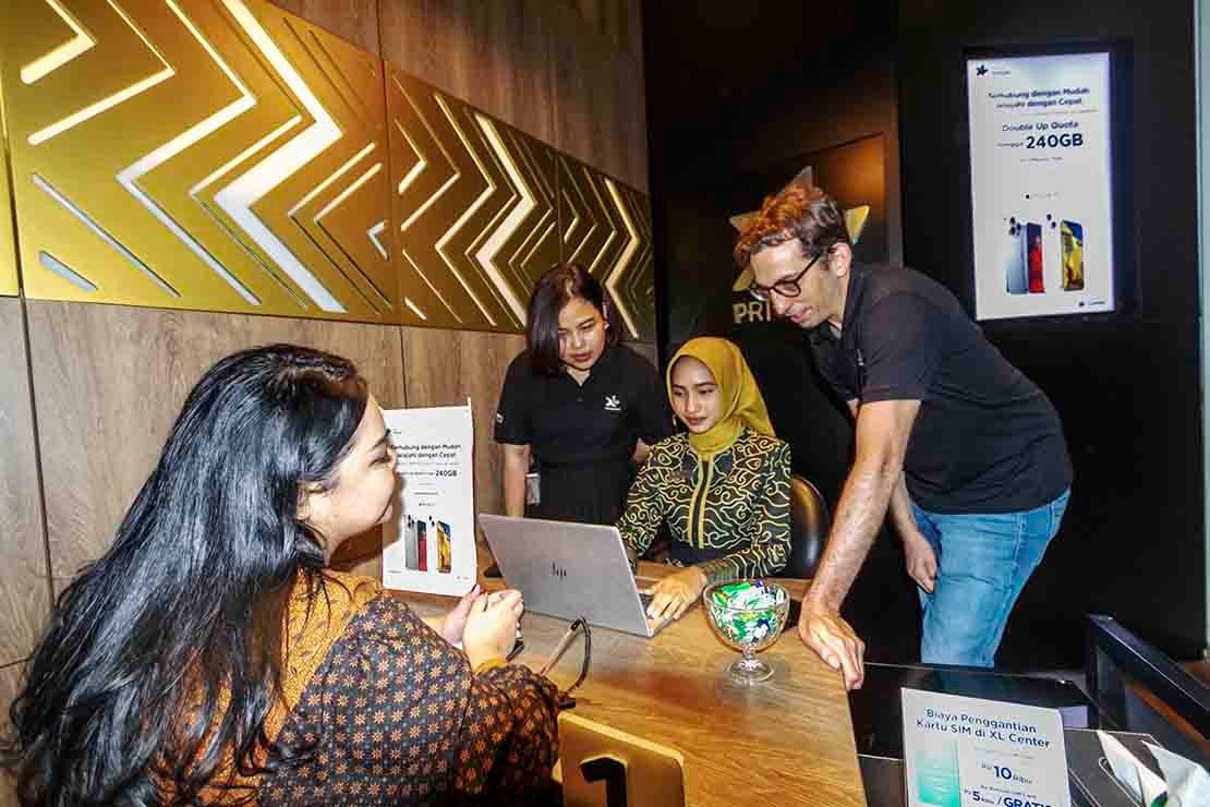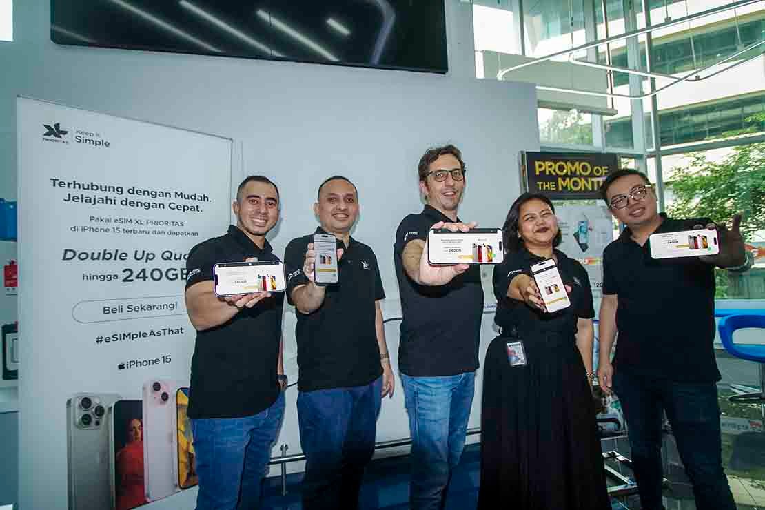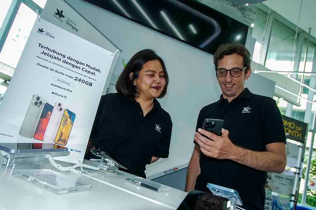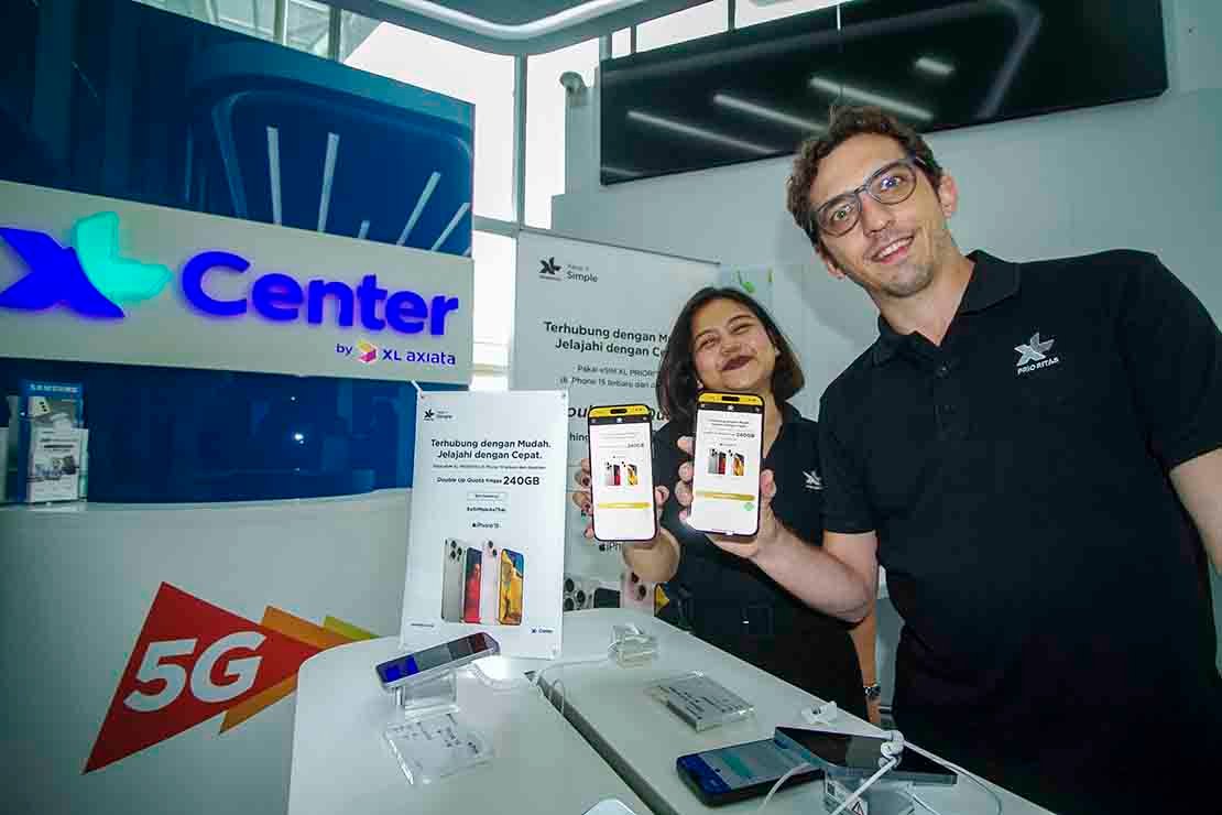 StockReview.id – Grup Head Premium Segment XL Axiata, Randu Zulmi bersama Chief Marketing Officer XL Axiata, Alfons Bosch Sansa dalam acara peluncuran program bundling kerjasama XL Axiata – Apple “myPRIO DEAL iPhone” di Jakarta, Senin (8/7/2023). Melalui program bundling myPRIO DEAL iPhone, pelanggan yang membeli iPhone tipe apa saja di XL Center dan toko mitra XL PRIORITAS, bisa mendapatkan bonus kuota dua kali lipat lebih besar hingga 240GB. Program ini bisa dinikmati pelanggan mulai 7 Juli 2024. Foto: SRID/Ruht Semiono.