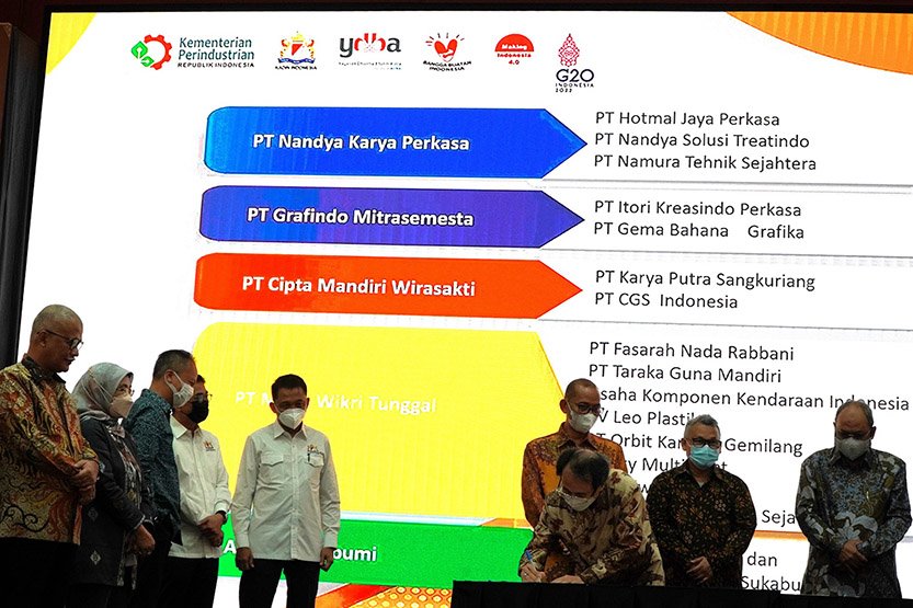 Penandatanganan perjanjian kerja sama oleh Ketua Pengurus Yayasan Dharma Bhakti Astra (YDBA), Sigit P. Kumala bersama 16 Perusahaan Tier 1 PT Astra Honda Motor serta 32 Industri Kecil Menengah (IKM) bidang manufaktur binaan YDBA disaksikan oleh Direktur PT Astra International Tbk, Gita Tiffani Boer (dua dari kiri) bersama Menteri Perindustrian RI, Agus Gumiwang Kartasasmita beserta jajaran; Ketua Umum Kamar Dagang Industri Indonesia (KADIN), M. Arsjad Rasjid P.M. beserta jajaran serta Direktur Utama PT Bank Rakyat Indonesia (Persero) Tbk, Sunarso dalam pembinaaan & fasilitasi akses pemasaran IKM beberapa waktu lalu di Gedung Kementerian Perindustrian RI, Jakarta.